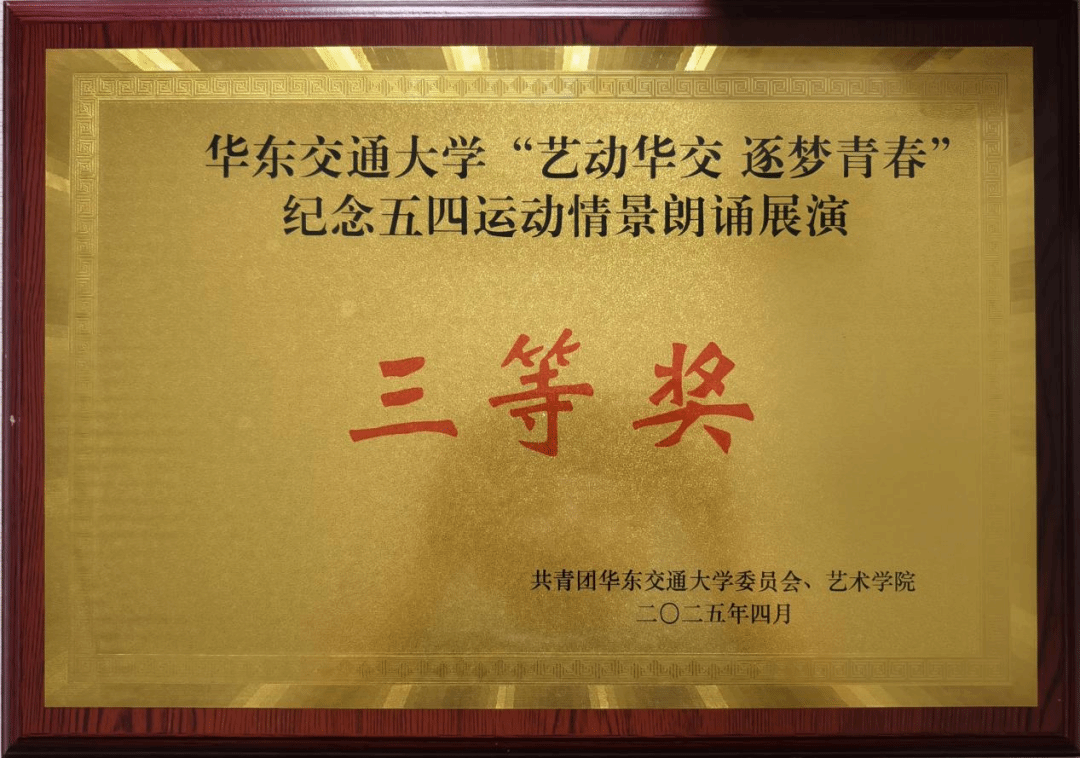 ●在PA视讯“艺动华交 逐梦青春”纪念五四运动情景朗诵展演活动中荣获三等奖。