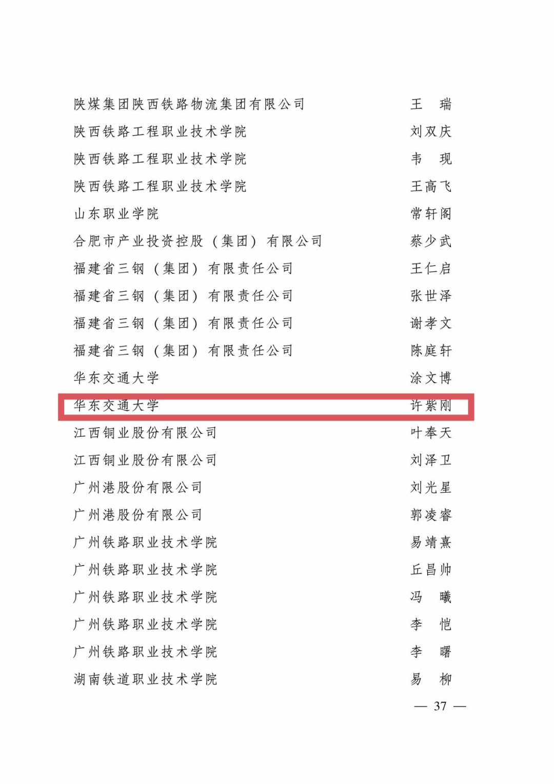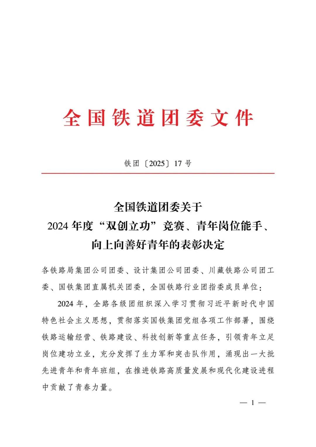 ●许紫刚老师荣获2024年度全国铁路“青年岗位能手”。