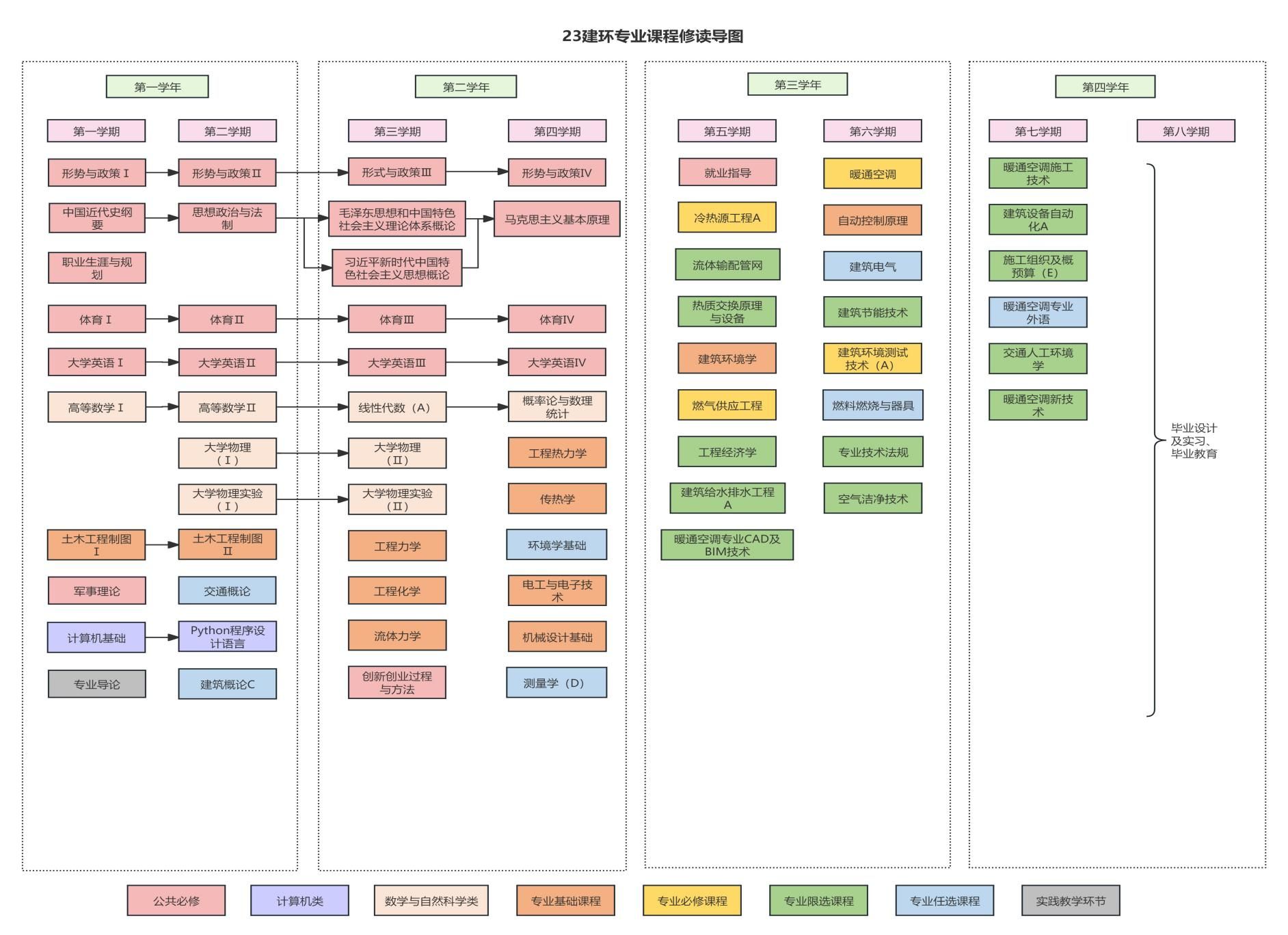 (7)暖通空调施工技术(2学分)、施工组织与概预算(2学分)、工程经济学(2学分);