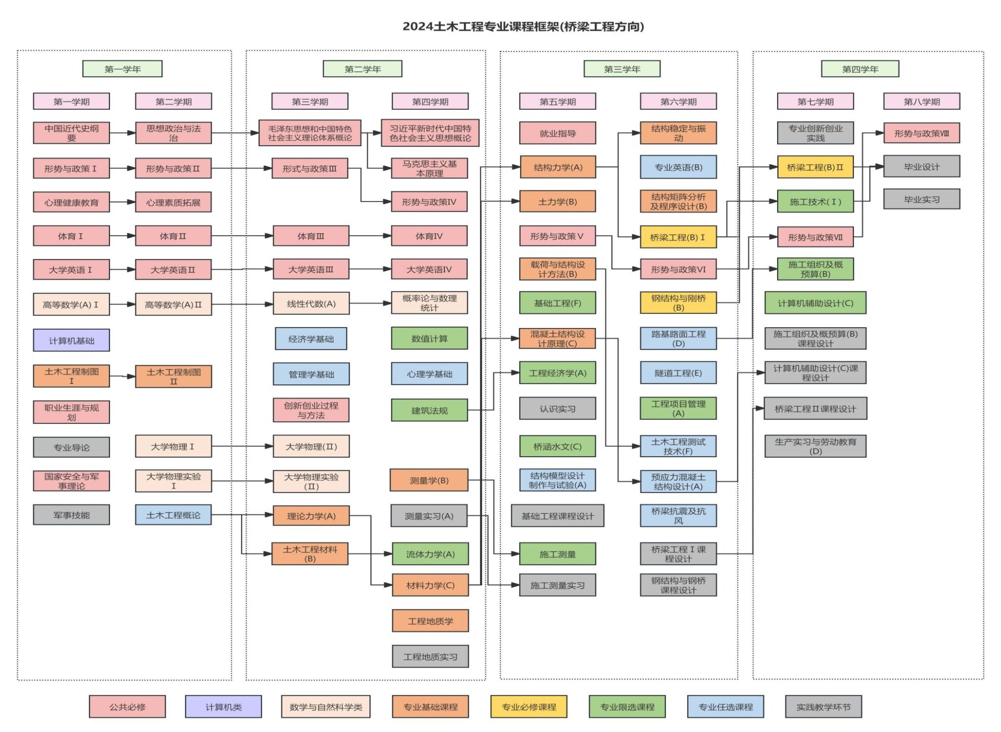 课程实践模块(桥梁方向) | 1513191370 | 施工测量实习 Construction Measure Practice | 考查 | 2.0 | 2周 |