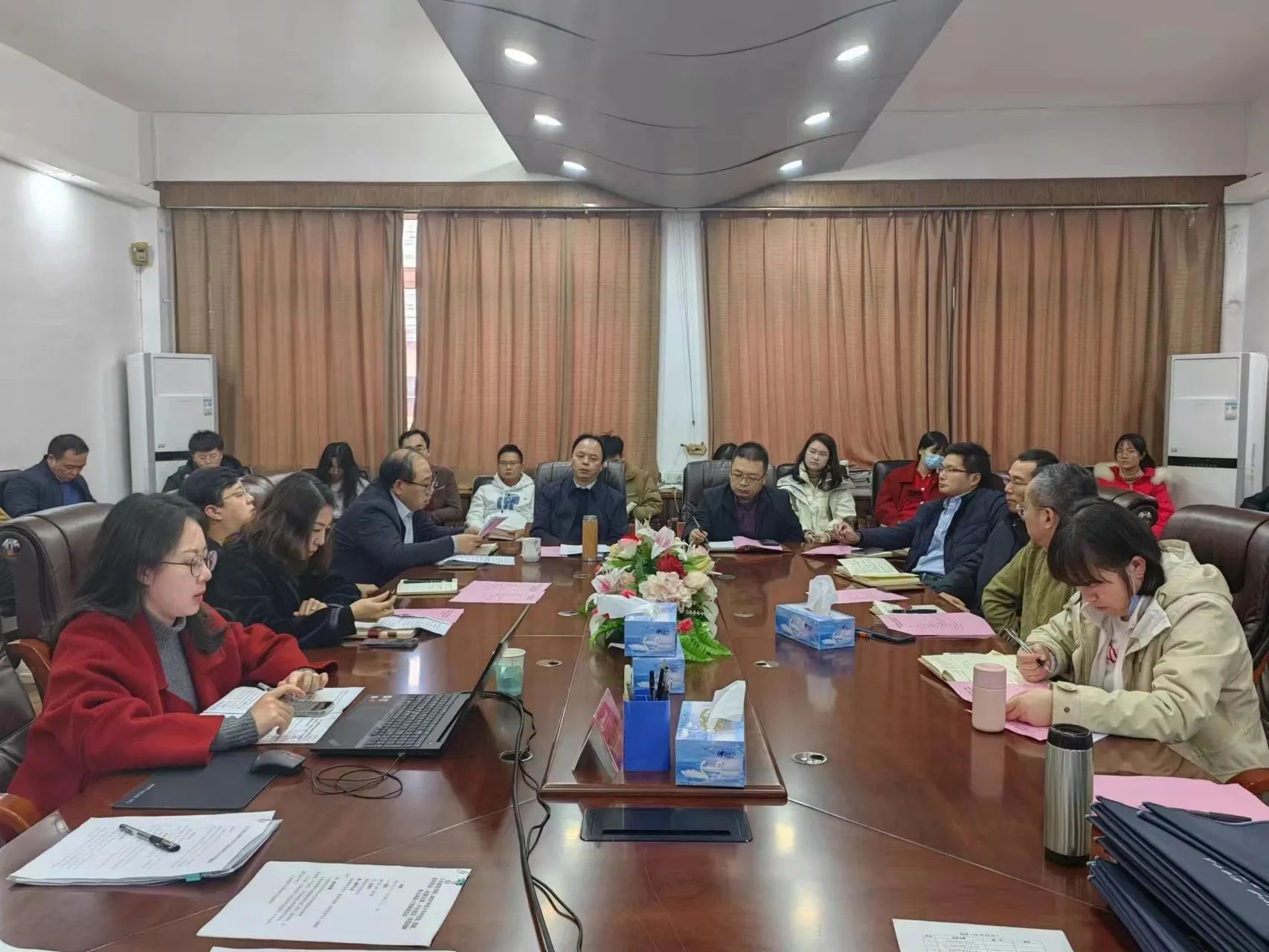 PA视讯集团官方网站于12月13日下午召开党建、思政、意识形态、民族宗教、平安建设、防范化解重大风险工作联席会议。公司各党委委员、院班子成员、各党支部书记及全体辅导员参加会议,公司党委书记陈水生主持会议。