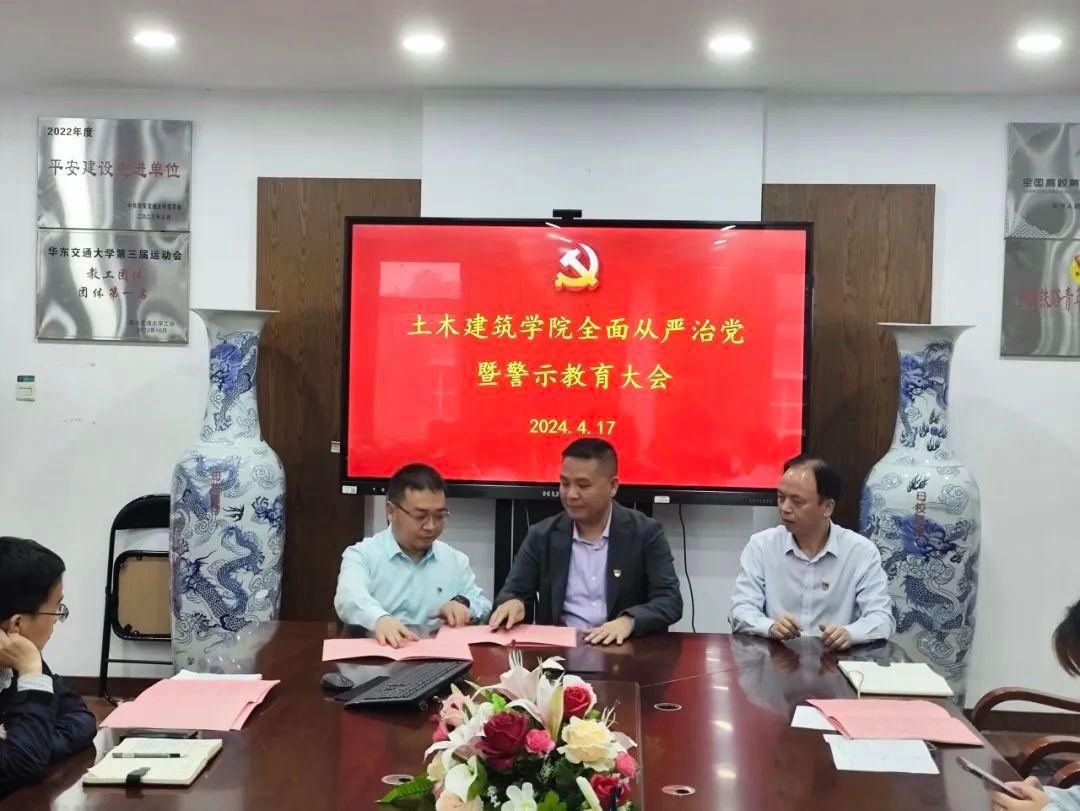 公司党委书记陈水生与党支部书记代表李晨、万雯怡签订了意识形态责任书,随后,他与经理庄海洋同系部主任代表伍海山、冯玉林签订了全面从严治党责任书。