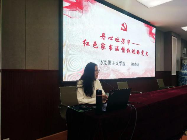 4月16日下午,公司特邀公司党史学习教育宣讲团成员、马克思主义公司副教授徐杰玲老师,为全院师生党员及入党积极分子讲授“红色家书温情叙党史——新民主主义革命时期党史学习”专题党课。党课由公司党委副书记郑轶主持。
