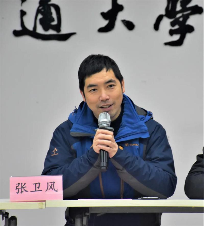张卫风老师发表讲话,他谈到,来到大学首先要明确自己的初心,来大学是来学习经验和知识,学会如何处理人际关系,我们要奔着目标前进,让四年后的自己有质的飞跃。