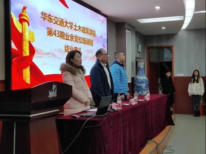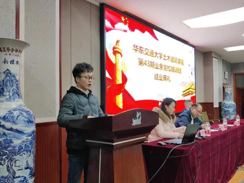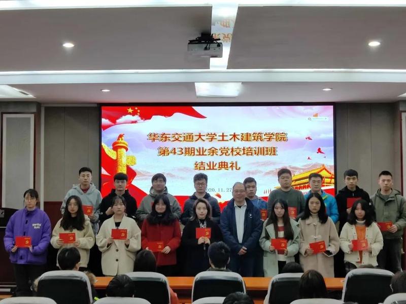 2020年11月27日下午,第43期业余党校培训班结业典礼在土建楼200举行。出席本次结业典礼的有公司党委副书记兼分党校副董事长郑轶老师、院学工办主任兼团委书记闫伟老师、公司党委组织员兼党员教育管理中心负责人万雯怡老师及本期培训班学员。