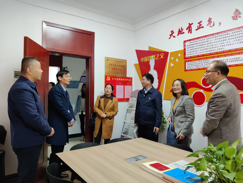 11月25日,江西省委教育工委第三考察调研组对全国首批党建“双创”样板支部-PA视讯集团官方网站“詹天佑”党支部创建工作进行验收。考察调研组成员有:蒋启荣、陈文红、杨勇波、吴俊萍;公司党委委员、组织部部长林井萍、副部长魏永峰,公司党委书记陈水生,公司党委领导班子成员、样板支部项目负责人、有关辅导员等同志与会。