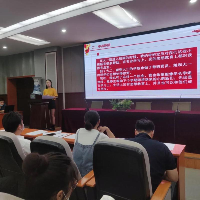 活动伊始,万雯怡老师宣布本次招新面试正式开始。本次面试分为线上面试和线下面试。面试环节中,21位员工党员从自身经历谈起,阐述着大学以来所经历的各种丰富多彩的人生经历,回想着初入校园时带班党员给予自己的帮助与鼓励,讲述了自己对带班党员这一身份的理解。党员们各抒己见,在面试中不约而同地谈起自己对带班党员这一岗位由衷地向往,并且都发表了如果当上带班党员后怎样肩负起应有的责任与担当。评委老师们围绕党员的自述以及平时表现,提出了富有针对性的问题,充分考验了同学们的心理素质、人际交往和应变能力,现场气氛活跃,同时也让评委老师对大家的认识更深了一步。