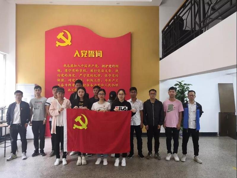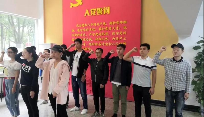活动分成了三个部分进行。首先,入党誓词是每个积极分子转为预备党员的第一件事,誓词中也包含着对每一位党员同志的基本要求。所以,在支部书记江钰的带领下,全体党员面对党旗,重温入党誓词。