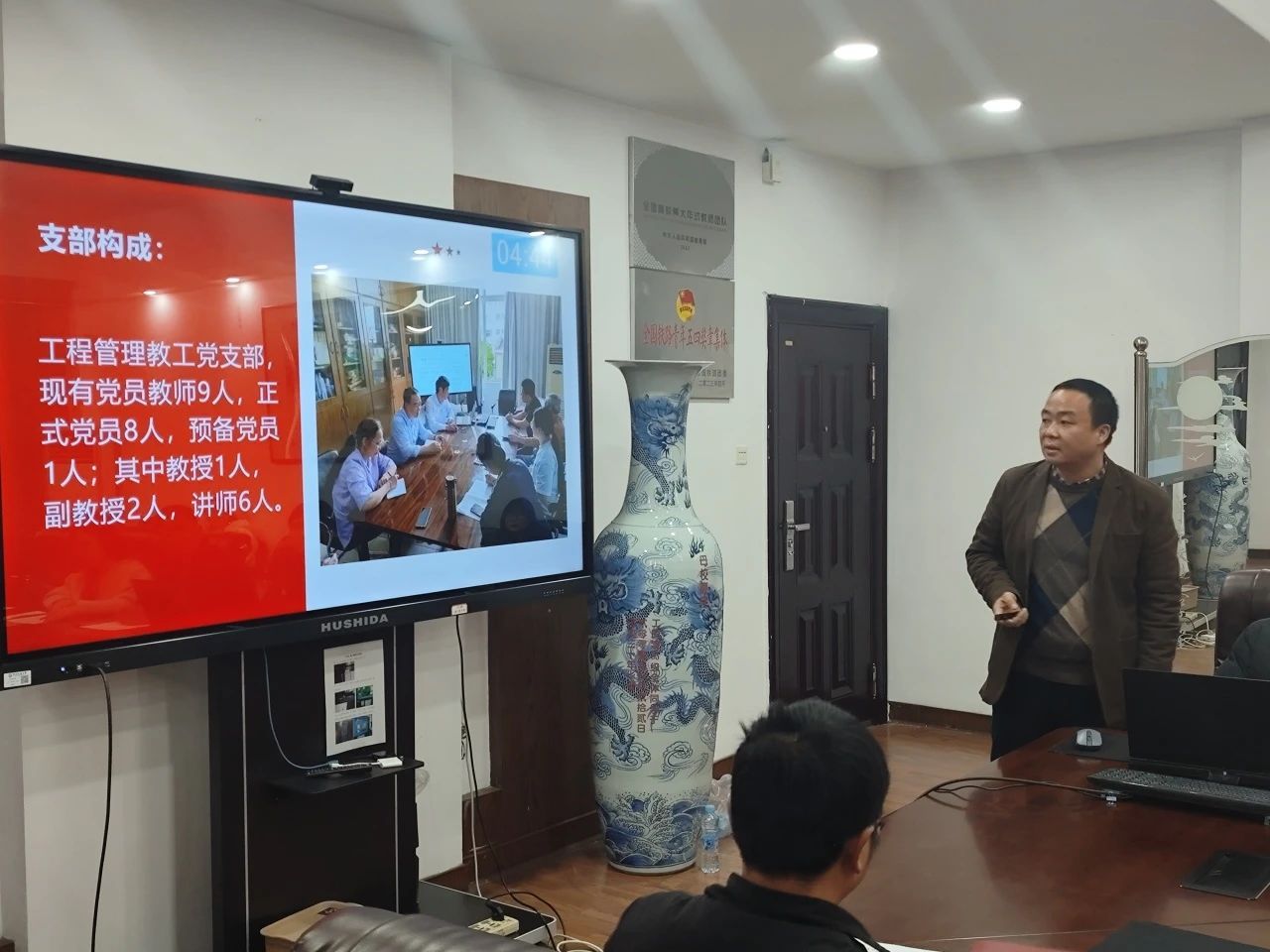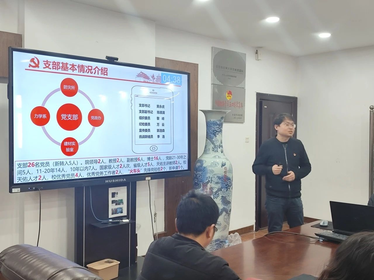 公司党委副书记郑轶就公司党建、思政、意识形态、民族宗教、平安建设、防范化解重大风险工作做综合分析报告。岩土道路工程教工党支部书记雷祖祥、建筑学教工党支部书记李晨结合工作实际作交流发言。
