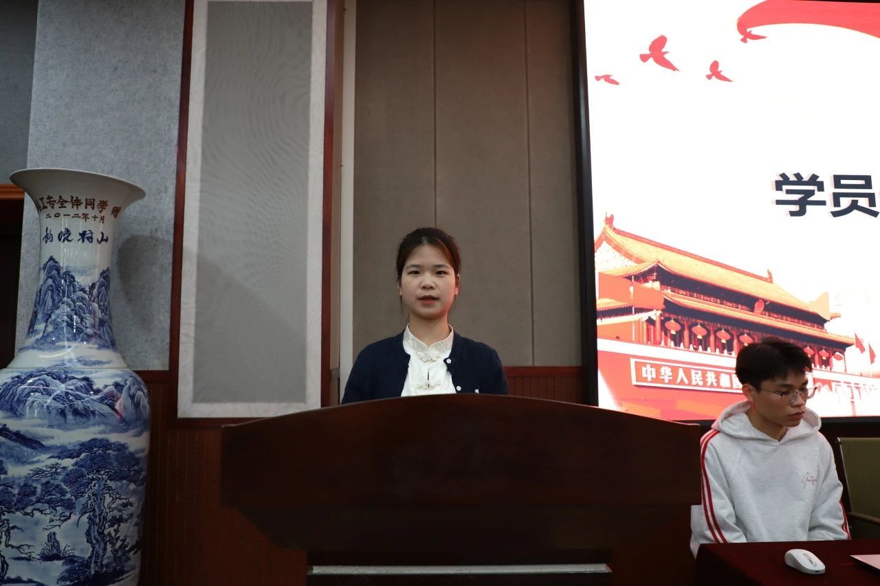学员代表李美芳发言,她代表本期学员面向公司党组织庄重表态,将以积极的态度投入培训,将党的理论学习内化于心、外化于行,在日常学习、生活中发挥先锋模范作用,以思考深化理解,以理解指导实践,从小事做起、从现在做起,不断提升自身综合素质,自觉接受党组织考验,不仅要做到组织上入党,更要做到思想上入党。