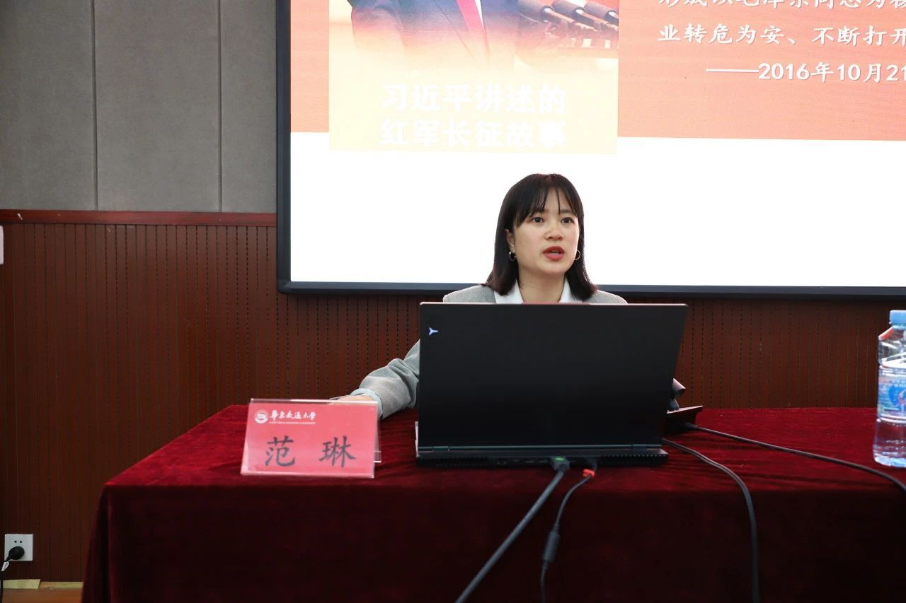 紧接着,范琳详细阐述了遵义会议精神的基本内涵——坚定信念、坚持真理、独立自主、团结统一。她指出,这些内涵的形成过程,既是历史的必然选择,也是革命的正确选择。遵义会议不仅是中国共产党历史上的一个重要里程碑,更是马克思主义中国化取得重大突破的新起点。