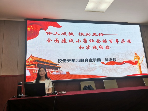 9月9日下午4点,公司邀请公司党史学习教育宣讲团成员徐杰玲老师为支部党员做《伟大成就 恢弘史诗——全面建成小康社会的百年历程和实践经验》报告,全体支部党员参加了报告会。