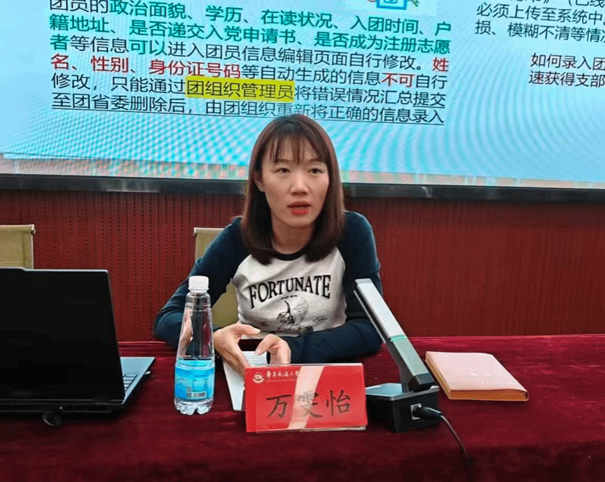 会上,万雯怡老师结合公司近学年团务工作数据与典型案例,围绕三大核心板块展开讲解与部署:首先要求规范团日活动开展,解决记录不规范等问题;随后讲解“智慧团建”系统操作,涵盖信息录入、关系转接等核心功能;最后全面解析入团、入党推优流程,明确资格、时间节点与考核要求,确保工作有序推进。