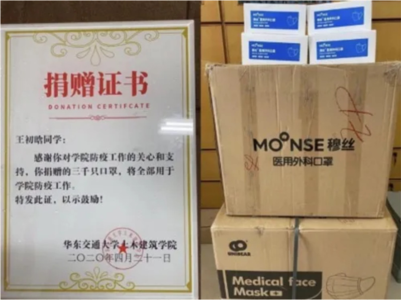 此外,师生也力所能及地为公司疫情防控献爱心。来自2017级土木工程城市轨道专业的员工王初晗急公司之所急,果断拿出积攒的存款,为公司购置了3000个医用外科口罩。