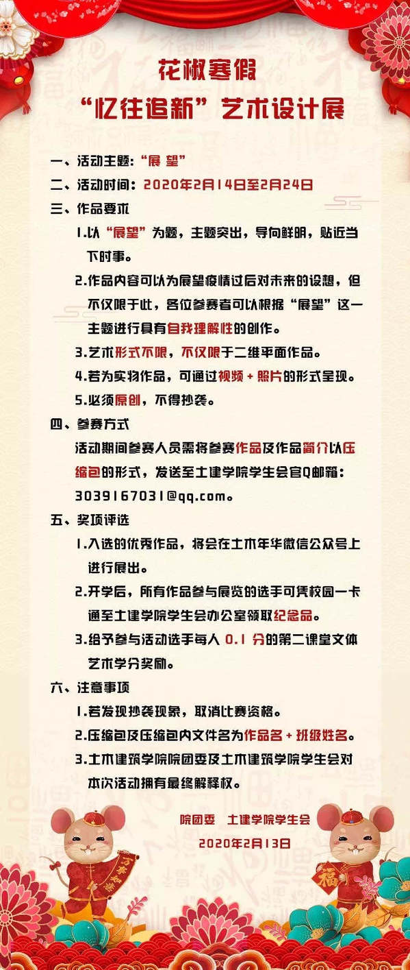2.作品内容可以为展望疫情过后对未来的设想,但不仅限于此,各位参赛者可以根   据“展望”这一主题进行具有自我理解性的创作。
