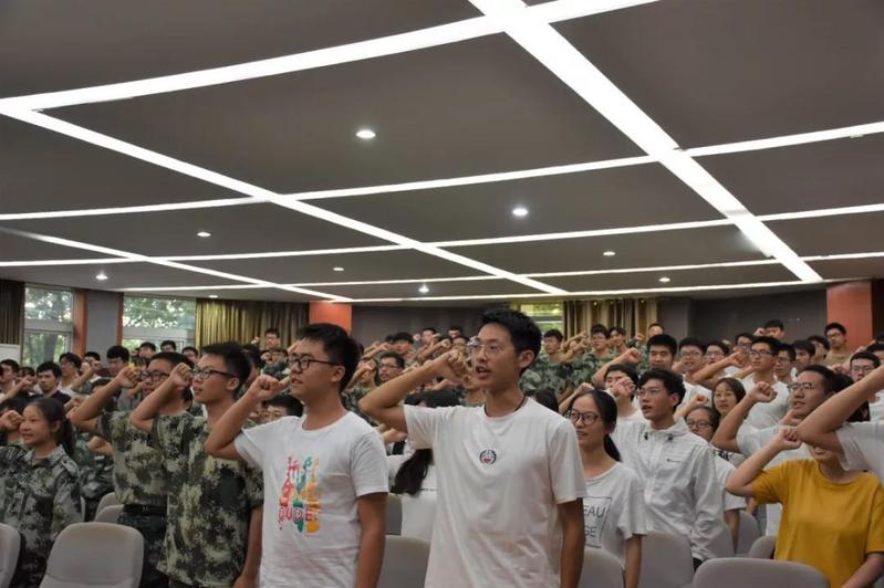 会议最后,环境工程学子全体起立,庄严宣誓并合唱《红旗飘飘》向祖国表白。