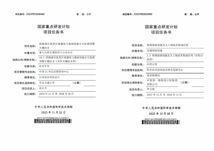 “十四五”期间,公司牵头获批了国家重点研发计划重点专项2项、国家杰出青年基金项目1项、国家基金重点项目1项、国家基金高铁联合基金项目1项、国家基金海外优青项目2项。