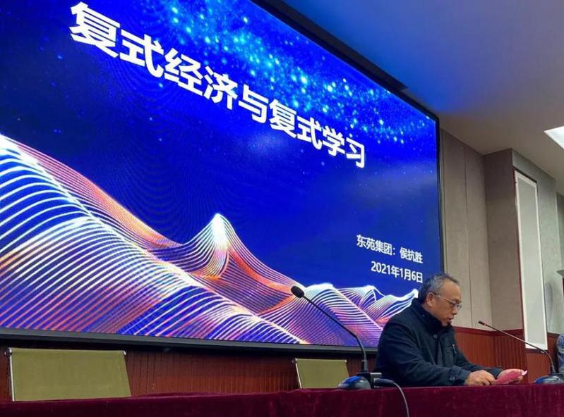报告内容共分三个部分:疫情与变局、“复式经济”和“复式学习”。在疫情与变局部分,侯董向广大师生分析了新冠疫情对各行各业的影响,新冠疫情对工作和生活方式带来的新改变,疫情加快了人工智能、5G等“新基建”的推进速度等方面内容。在“复式经济”部分,侯董比较分析了中国特色社会主义同西方自由经济的差异,具体比较了中国、美国、俄罗斯三国的经济体系差异,指出中国的“复式经济”以“政府+市场”的“二人转”模式,将各种经济要素化繁就简,造就了中国经济的崛起,指出中国特色社会主义政治、经济制度具有无比的优越性。就当前中国经济倡导的“双循环”模式,侯董向大家介绍:“内循环为主”,绝非是应对美国打压的权宜之计,而是在疫情冲击和全球秩序变化下,整个中国经济实现高质量发展的国策调整。在“内循环”中,侯董重点分享了城市群建设、脱贫攻坚、乡村振兴战略等三方面内容。就“外循环”等相关内容,侯董从“外循环”的开端—中国加入WTO讲解开始,分享了国家“一带一路”倡议、区域全面经济伙伴关系(RCEP)和中欧投资协定等最新内容和签订始末。在“复式学习”部分,侯董就自身学习经历,向大家倡导要“复式学习”,即专业课学习与社会实践要齐头并进,并建议大家要终身开展“复式学习”,并以图片形式展示了公司在读研究生在上海东苑集团实践锻炼的场景。