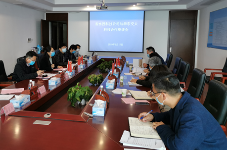 江西省水投科技有限公司非常重视与公司的科技合作,公司总经理彭宇、副总经理柴亮太、企业管理部部长邱文娟、科技合作部部长张民、黄珍飞等参加会议,并对公司科研团队的到来表示热烈欢迎。会上,胡锋平经理首先回顾了公司与水投集团的科研合作,双方联合申报饮用水安全重点实验室的经验。耿大新副经理就联合申报水利工程防灾减灾工程中心的具体事宜、以及团队主要研究课题进行了汇报,双方对工程中心具体定位以及主要发展方向等进行了热烈讨论。