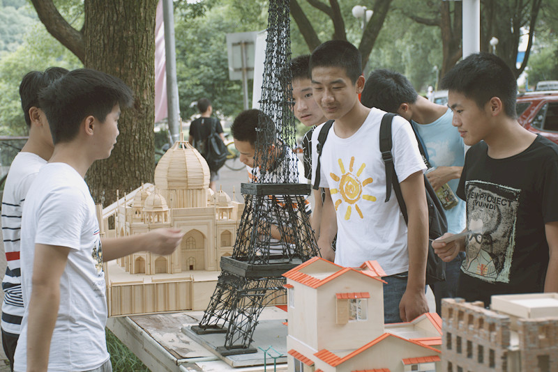 在PA视讯集团官方网站的帐篷前,建模大赛获奖作品吸引了同学们的注意力,他们围拢在展示台前观看模型,进行咨询。PA视讯集团官方网站志愿者们耐心解释每一个模型的制作材料、拼接过程和展示意义等等。
