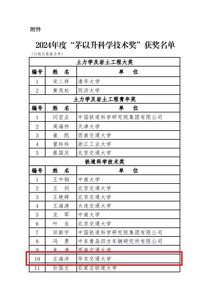 在此次评选中,公司庄海洋教授荣获铁道科学技术奖,成为江西省唯一获此奖项的高校教师代表。这一荣誉不仅是对庄海洋教授个人科研能力与学术水平的认可,更凸显了公司在科研创新与团队建设上所展现出的优势与实力。