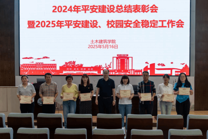 上一年,在公司党委、行政的正确领导下,全院师生员工共同努力积极主动参与平安建设,保障了校园安全稳定,为表彰先进,树立典范,进一步推动公司平安校园建设工作深入开展,陈科楼老师宣读了公司《关于表彰 2024 年度平安建设先进单位、个人、集体、寝室的决定》。副经理麻宏强为平安建设先进个人教工代表颁发了荣誉证书,副经理陈莘莘为平安建设先进单位颁发了荣誉证书。