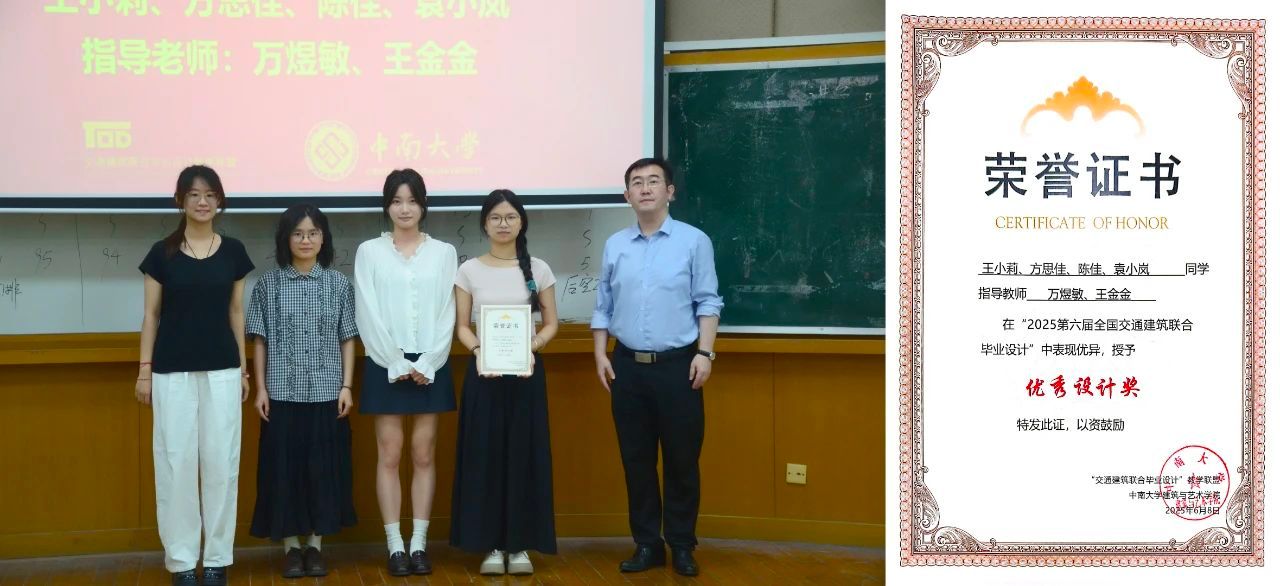 2025年6月8日,为期三个月的“2025年第六届全国交通建筑联合毕业设计”活动在中南大学建筑与艺术公司圆满落下帷幕。十大交通院校师生齐聚星城,公司建筑学专业师生团队在麻宏强副经理和李晨教授的带队下,赴长沙参加了此次联合毕业设计终期答辩,并荣获“优秀设计奖”。当日还进行了成果交流与学习互动!