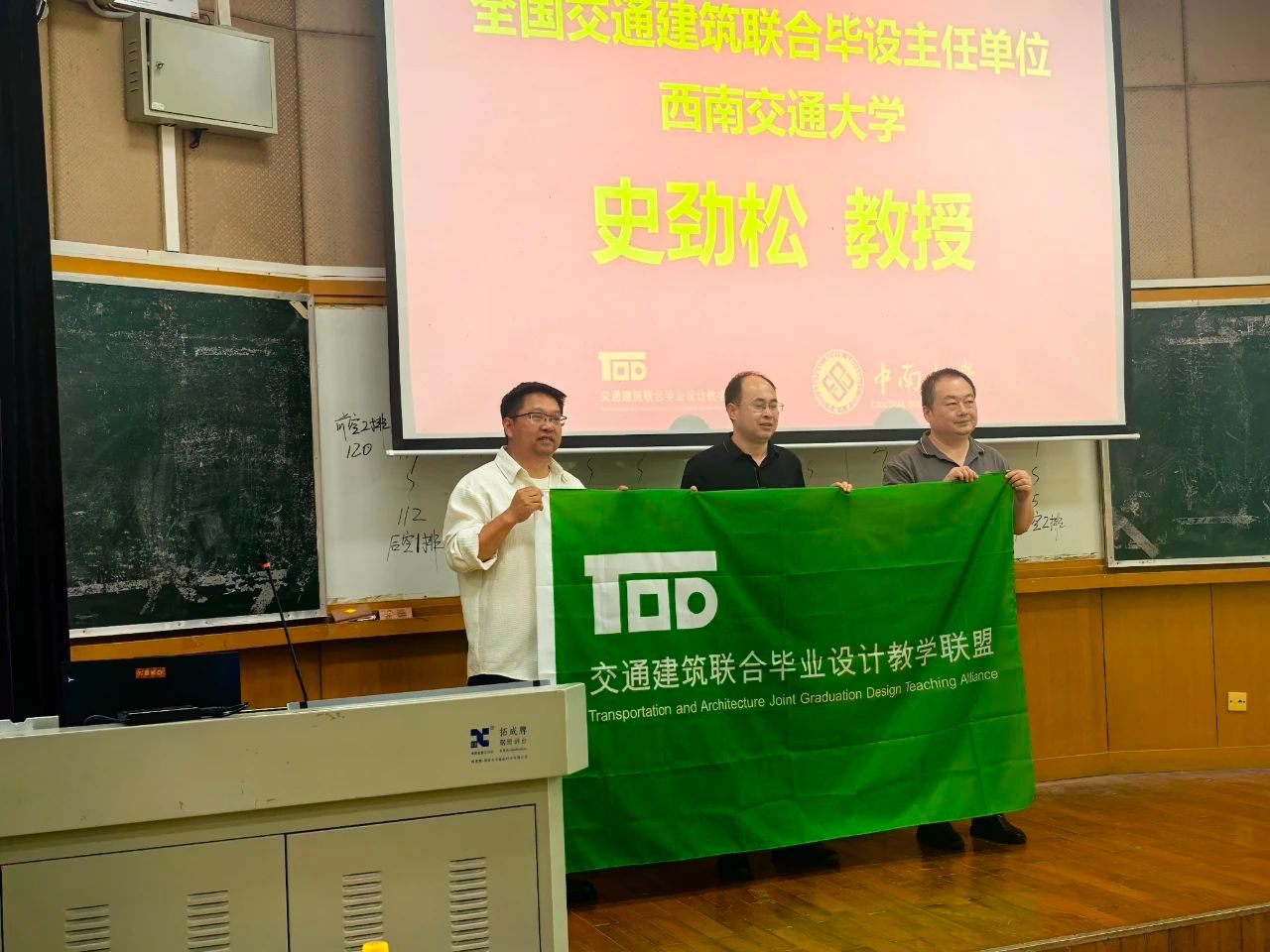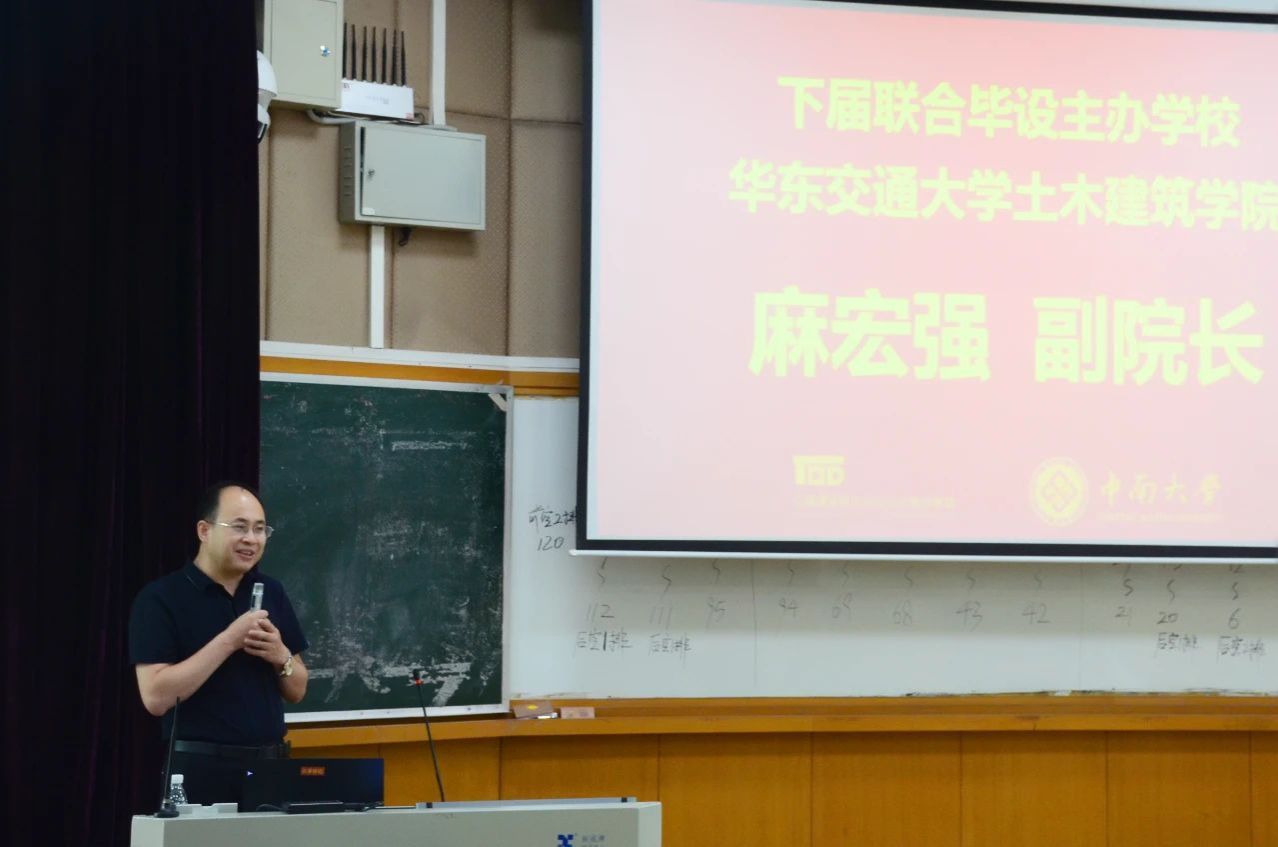 在全国交通建筑联合毕设主任单位西南交通大学史劲松教授的主持下,本届主办方中南大学建筑与艺术公司解明镜副经理将象征着责任与梦想的联合毕设旗帜,郑重交予下届主办方代表——PA视讯集团官方网站麻宏强副经理手中。这一刻,接力棒正式传递,2026年的舞台属于华东交大!