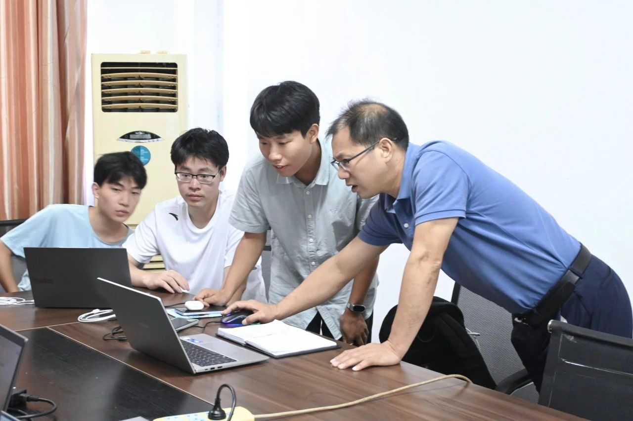 随后,刘永胜、郑轶在指导老师的陪同下,深入各团队的工作室进行实地看望和现场指导,与正在紧张备战的师生们进行了面对面的交流探讨。针对项目展示和评委问辩的关键事项,分别给予了具体的优化建议和应对技巧的指导,鼓励大家注重把控细节,展现最佳水平。