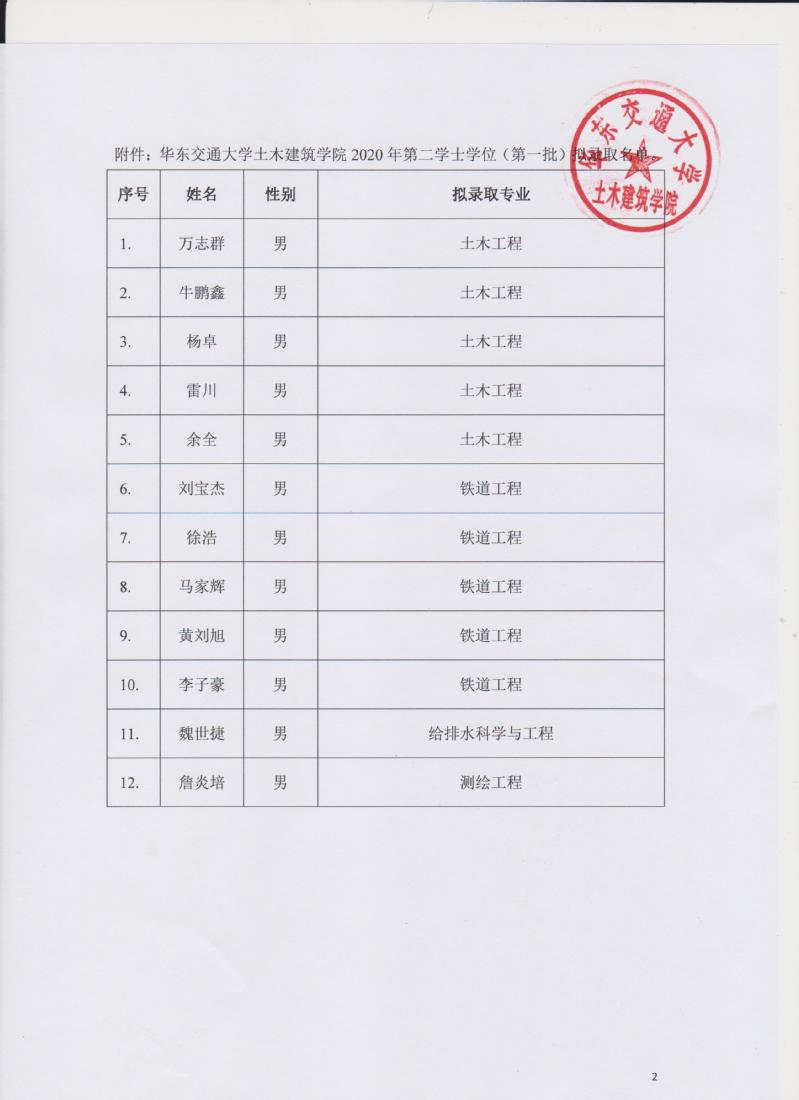 2020年第二学士学位招生(第一批)拟录取名单