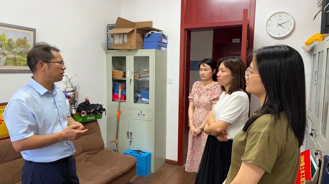 走访期间,刘永胜对员工的学习生活环境也给予了极大的关注。他逐一巡查了各个工作室,细致检查了工作室安全用电、仪器存放等情况,并特别提醒同学们要时刻注意各方面的安全,自觉遵守安全管理规定,保持工作室的整洁与舒适,以便在良好的环境中更加专注于学习和研究,保证暑假员工安全万无一失。此外,他还就如何营造更为浓厚的学术氛围,提出了建议和要求。