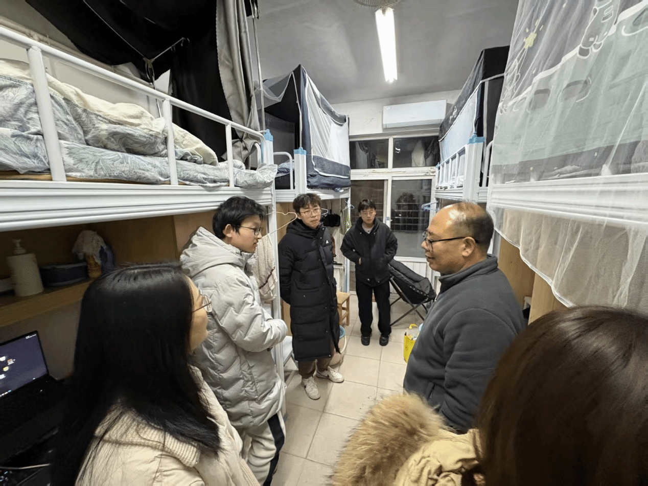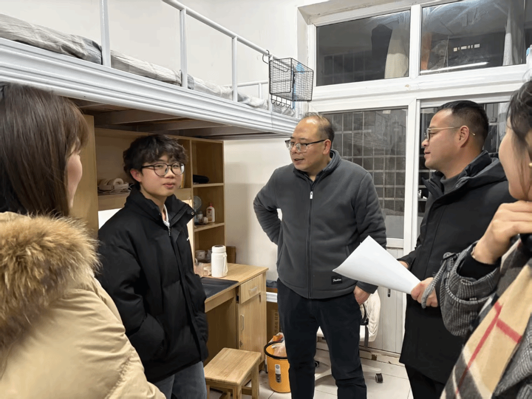 郑轶亲切询问同学们的生活近况。他对寝室卫生、用电安全等方面进行仔细检查,引导员工从细微处着手,以更加饱满的精神面貌迎接新学期。他提醒同学们要将寝室安全牢记在心,落实安全用电相关制度,保持整洁有序的寝室环境。同时,他鼓励同学们树立积极、正确的学习态度,努力学习专业知识、扎实本领,充分利用课余时间参与各类文体活动,度过充实、美好的大学时光。