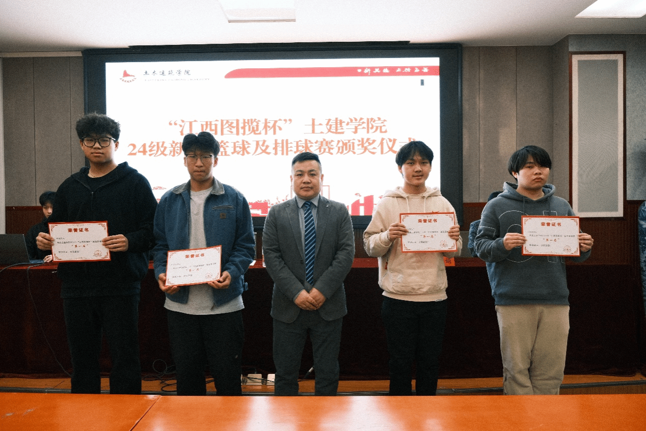 报告会前,员工李永珍和公司销售部经理邓梦云、综合部经理宋利娟分别为“江西图揽杯”2024级新生篮球赛、排球赛获奖代表队颁奖。