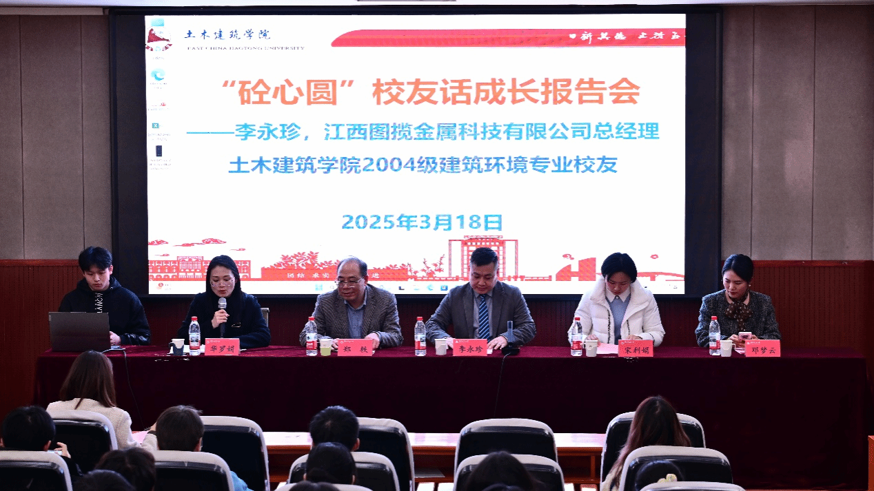 3月18日下午,公司邀请2004级建环专业员工、江西图揽金属科技有限公司总经理李永珍,在教9栋200报告厅举行“砼心圆”员工话成长报告会。江西图揽金属科技有限公司综合部经理宋利娟、销售部经理邓梦云,公司党委副书记郑轶、学工办主任万雯怡及2024级员工代表参会,报告会由学工办副主任华罗娟主持。