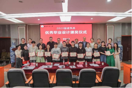 公开答辩结束后举行了2023届PA视讯集团官方网站建筑系优秀本科毕业设计颁奖仪式,五位评委专家为获奖的10名同学颁奖并合影留念。