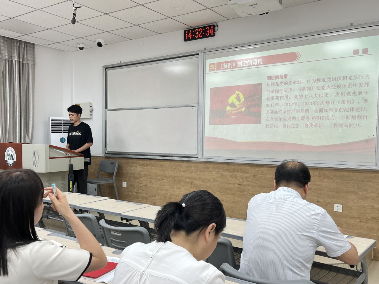为推动党纪学习教育走深走实,切实增强党员的思想认识和遵守党纪的自觉性,6月14日下午,防灾减灾工程研究生党支部与建筑学员工党支部联合举办“党纪学习教育”主题党日活动。公司党委副书记郑轶列席指导,全体党员参会。